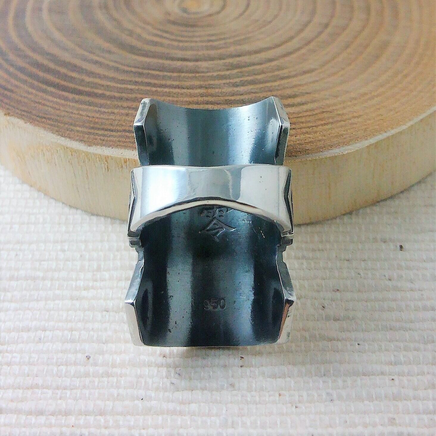 侍の甲手をモチーフに六角形を3枚並べて腕に着ける甲冑をイメージした指輪です。